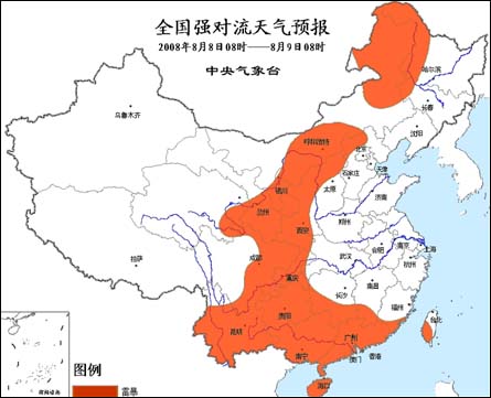 中央气象台2008年8月8日6时发布强对流天气预报: