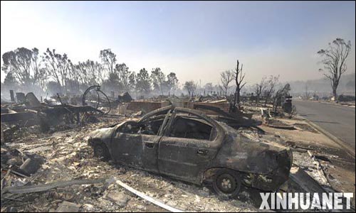 加州州长施瓦辛格15日上午已宣布洛杉矶县以及另外一个县进入紧急状态,并形容大火过后如同地狱一般。据悉,在被烧毁的500多栋住宅中不乏演艺界名人们的昂贵豪宅。这是当地30多年来最严重的山林大火。