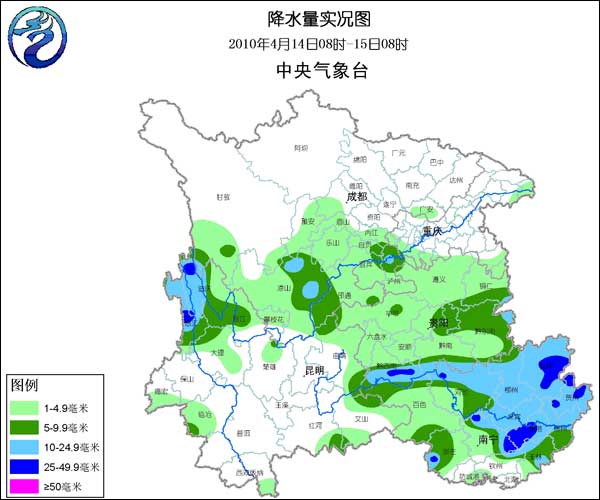 近日,西南旱区降喜雨。据统计,4月14日08时至15日08时,广西、贵州、四川南部以及云南西北部降小雨,广西东北部、云南西北部以及贵州西南部局部降中到大雨。这是4月3日以来,四川南部和云南部分地区第一场比较大的降雨,另外,贵州西南部也出现了降雨,特别是旱情严重的兴义也出现了14毫米的降雨。这是兴义去年9月21日以来的最大降雨,也是第一场中雨。