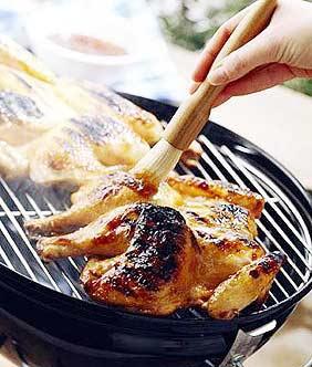 食材部分,最好挑选油脂少的瘦肉,如猪里脊、鸡胸肉或鱿鱼、生蚝等海鲜;酱料方面,最好不要边烤边刷烤肉酱,以免吃进太多的盐和钠。台湾高雄义大医院营养师李佳莹建议,肉类可以先腌再烤,如果喜欢边烤边刷酱的乐趣,可自制烤肉酱或是把烤肉酱加水稀释。扇贝等海鲜,可不放酱汁,直接加些蒜茸烤味道就最好,还可减少致癌物的产生。很多人喜欢边吃烤串边喝饮料啤酒,这是很不健康的。最好配上大麦茶或绿茶,最好是温热的,解腻,又保护肠胃,免冷热交替刺激。