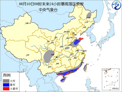预计今天白天到夜间,黑龙江中部、辽宁南部、山东大部、苏皖北部、河南中部和东北部、四川中部、浙江东南部沿海、福建东部沿海、台湾省、广东大部、广西南部以及海南等地的部分地区将有大雨或暴雨,其中,山东半岛、福建东南部沿海、广东沿海以及广西南部沿海的局部地区将有特大暴雨。上述局地有并将伴有短时雷雨大风或冰雹等强对流天气。